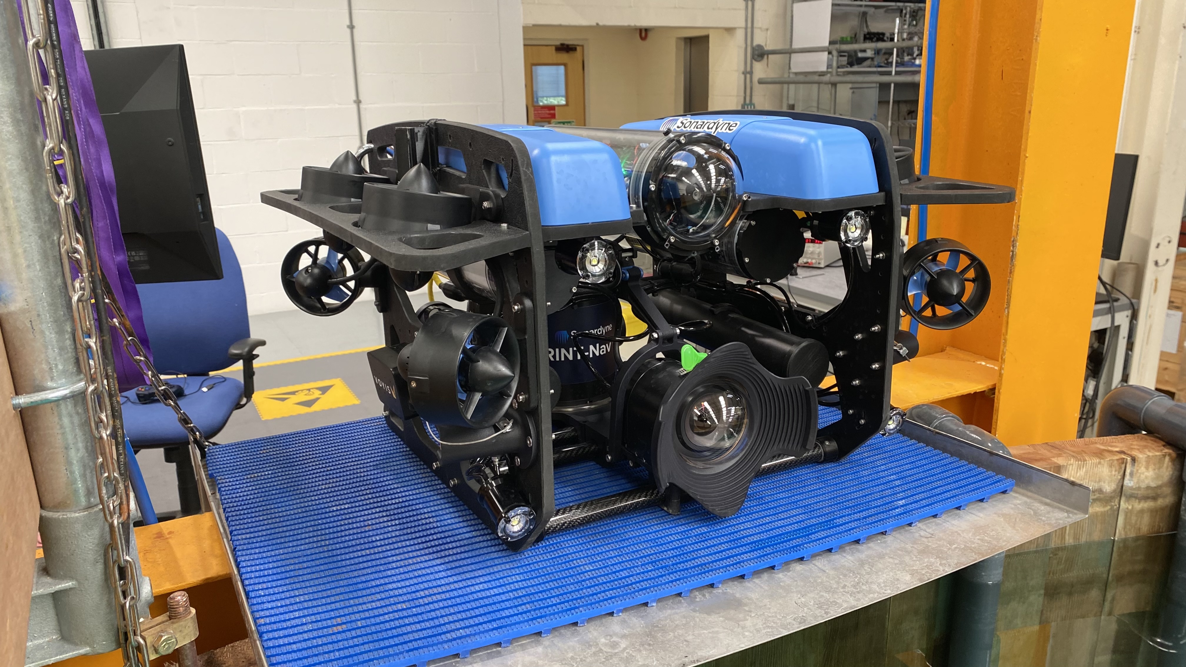 When submerged, the AUV utilises Sonardyne's Mini Ranger 2 Robotics Pack to track an AvTrak 6 Nano mounted in the AUV. This AvTrak 6 Nano is used for communicating with the surface and also for sending position updates into the SPRINT-Nav Mini.