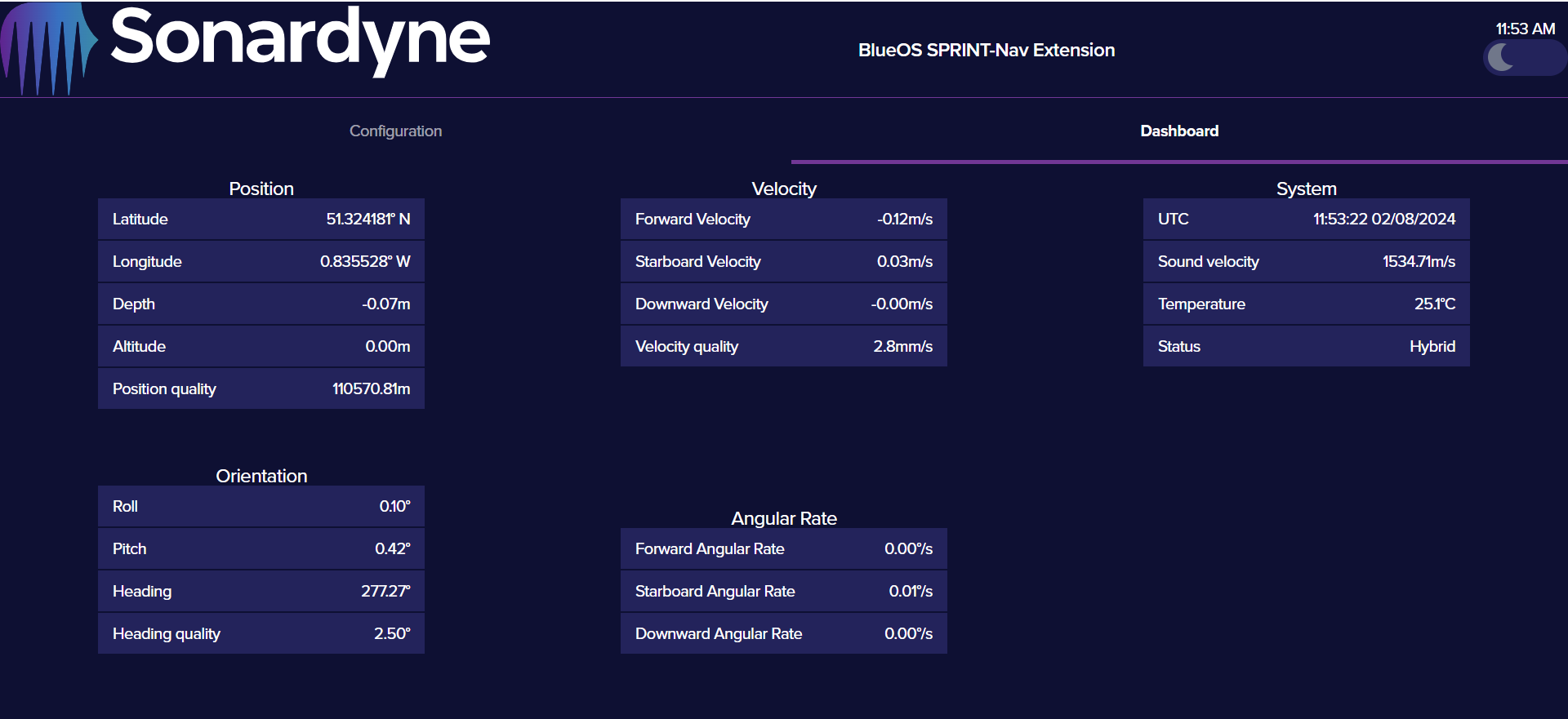 - GNSS often gives erroneous positions as a vehicle surfaces and when a vehicle dives. SPRINT-Nav Mini will reject data that falls outside its own position error estimate, Sonardyne advise users to disable GNSS when diving and for a period of time after breaking the surface, particularly as the SPRINT-Nav's position estimate will likely be large when surfacing, and thus the system is more susceptible to poor quality GNSS.