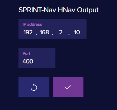 Once the HNav stream is configured enter the SPRINT-Nav IP address and associated TCP port for the HNav stream.